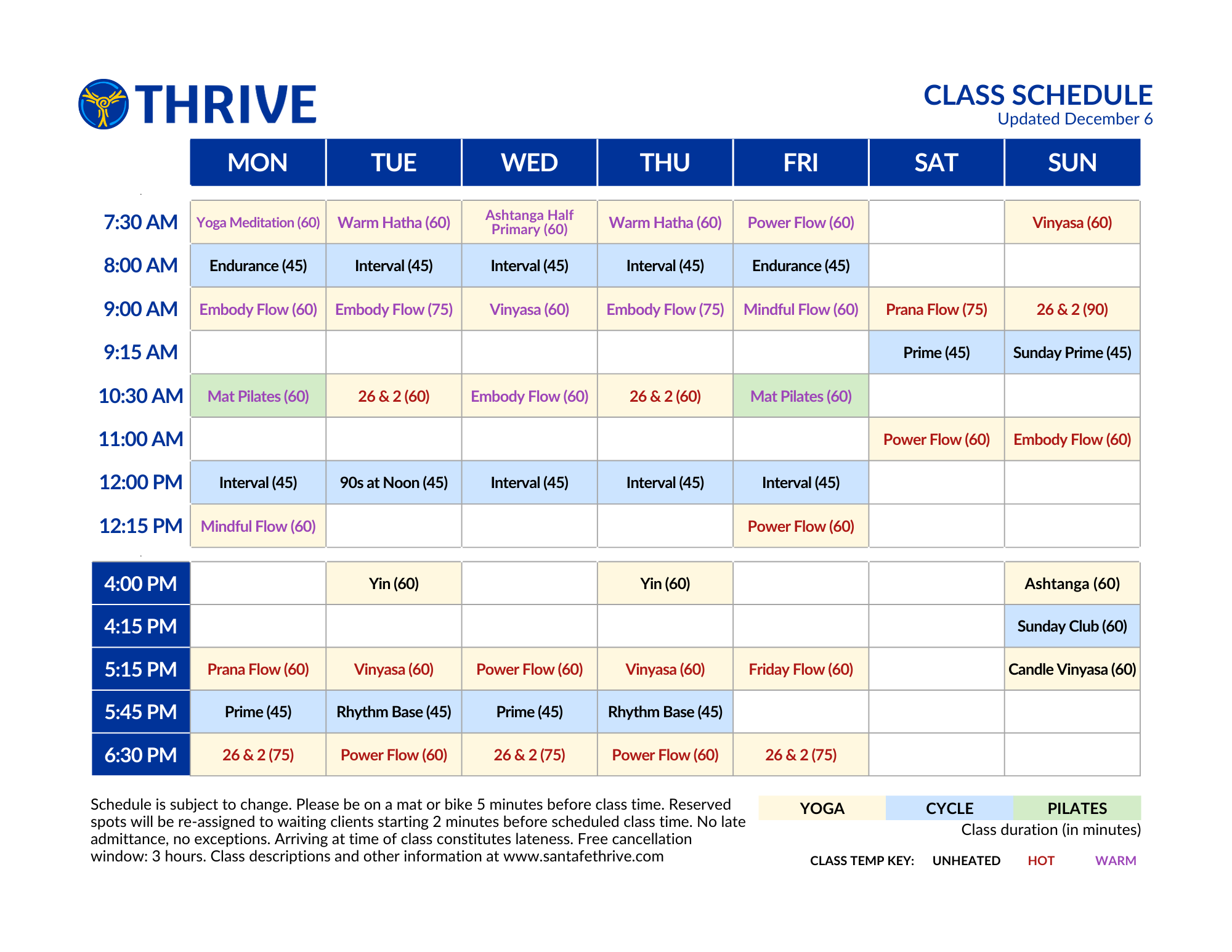 Thrive offers heated and unheated yoga, indoor cycling, mat Pilates, and fitness classes in a clean, welcoming space. We are a local, in-person studio focused on intelligent movement, genuine connection, and a supportive experience for every body. Enjoy private showers, free towel service, and passes that don’t expire.